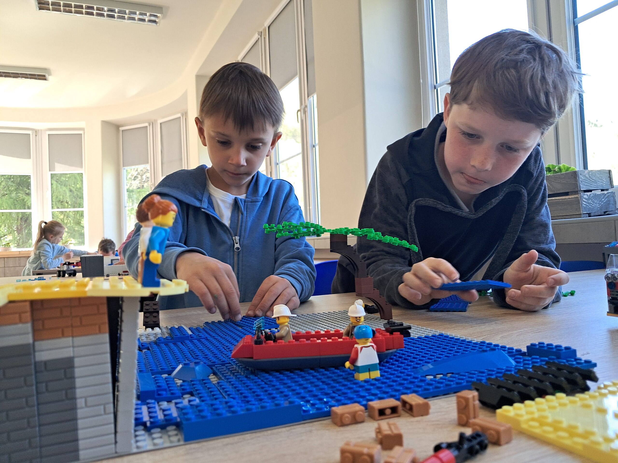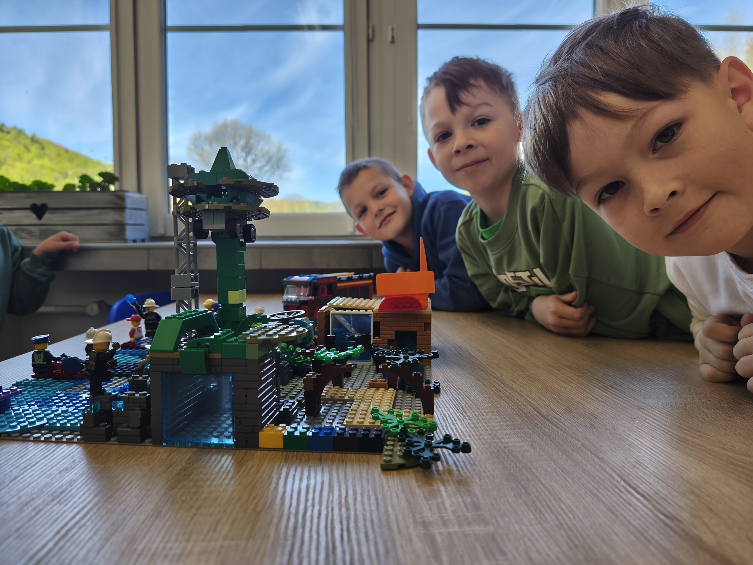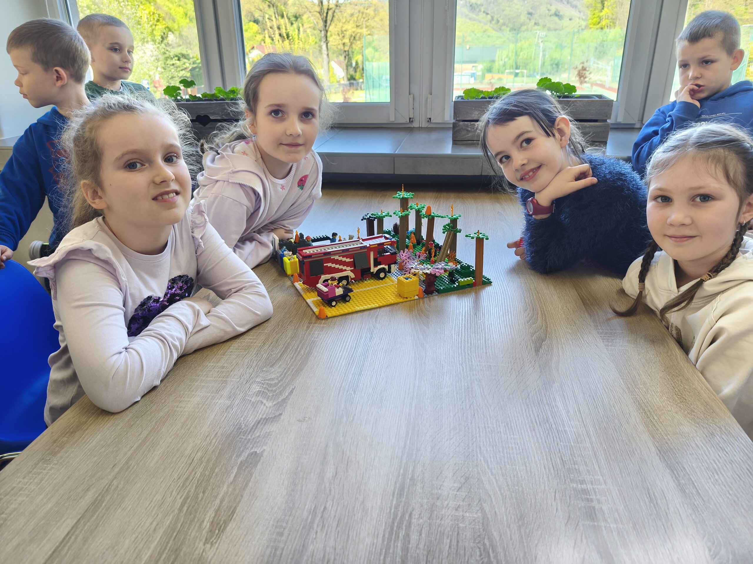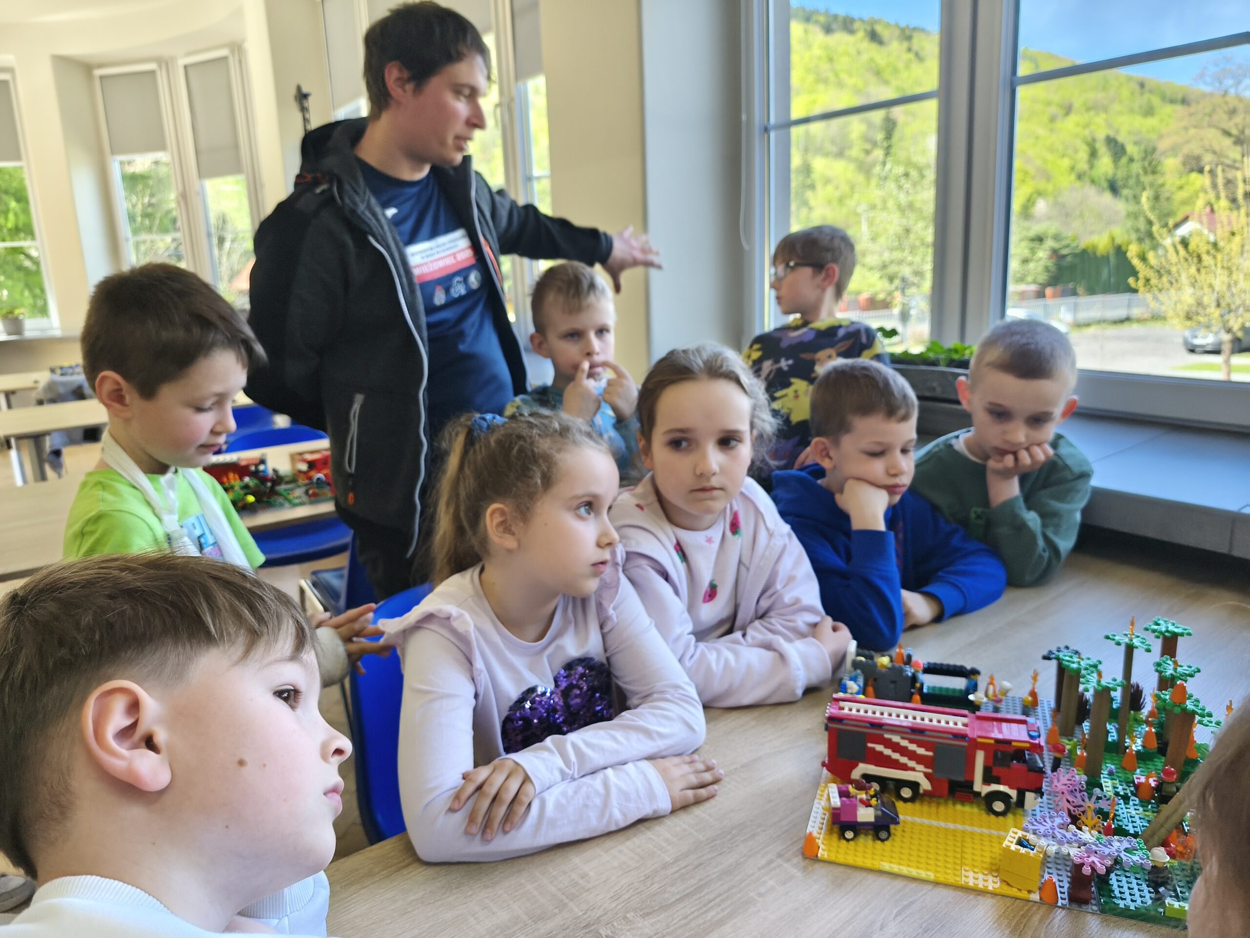 Na początek uczniowie poznawali zagrożenia ekologiczne związane z akcjami ratowniczo-gaśniczymi. Brzmi poważnie? Może trochę, ale w praktyce było też mnóstwo radości! Dzieci budowały makiety z klocków LEGO, a następnie prezentowały swoje projekty, snując przy tym barwne historie. Nie zabrakło pomysłowości, a wyobraźnia pracowała na najwyższych obrotach. Przy okazji uczniowie rozwijali zdolności konstrukcyjne, ćwiczyli koncentrację i doskonalili sprawność manualną.