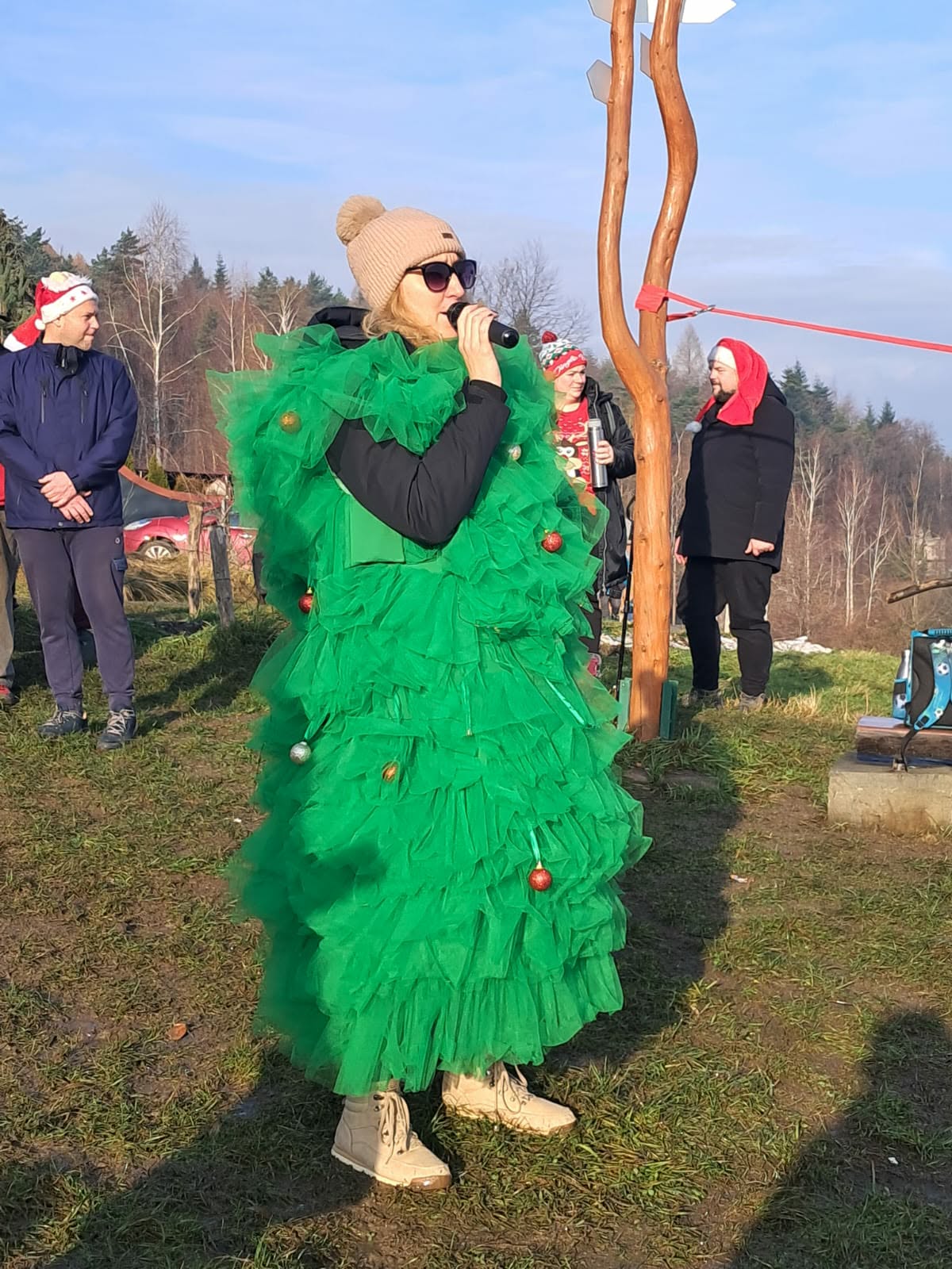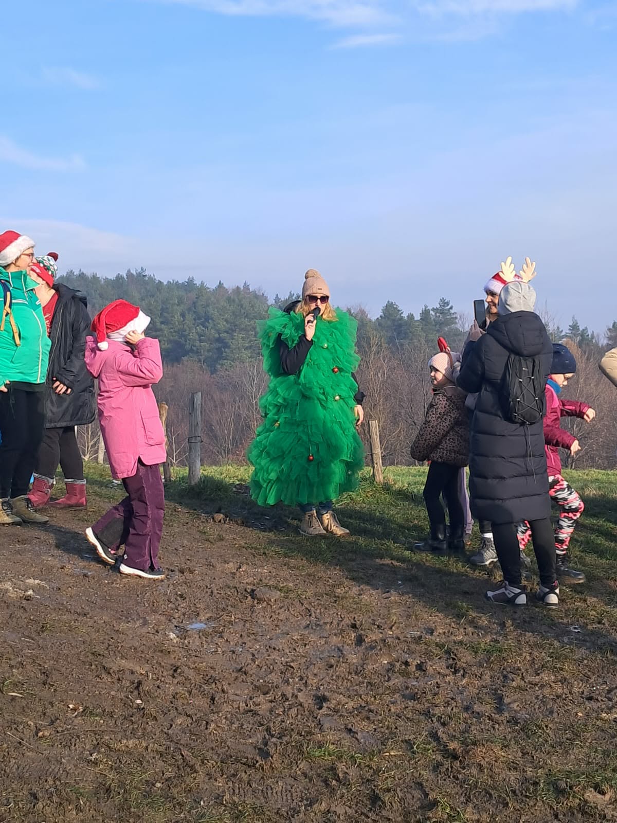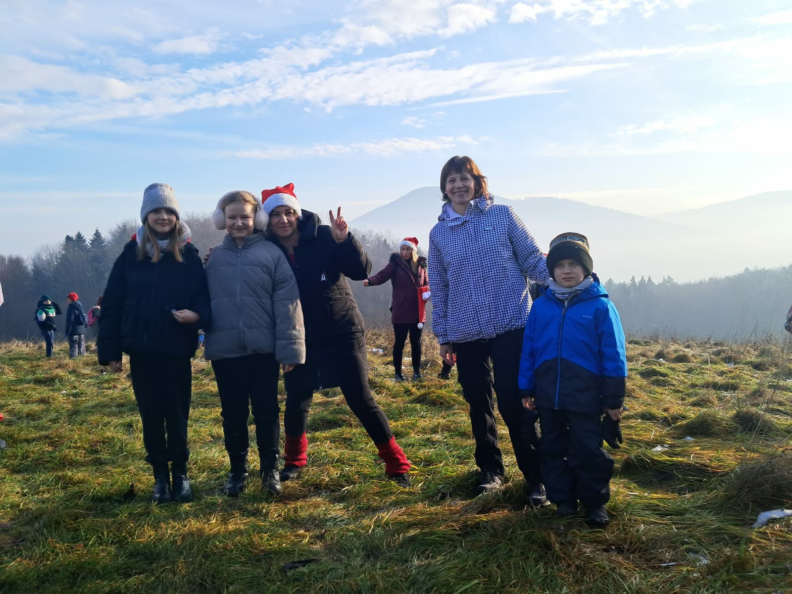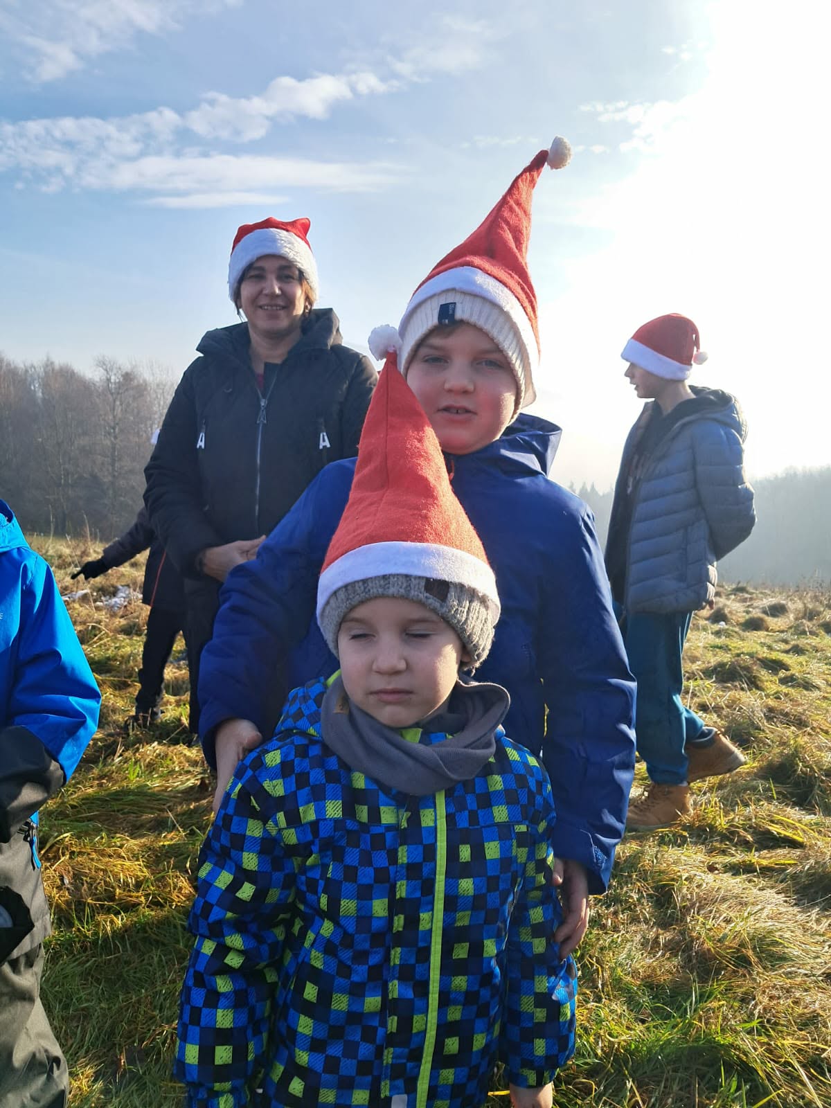 W sobotę 6 grudnia 2025 roku wzięliśmy udział w rajdzie na Wołek, którego główną atrakcją było wspólne ubieranie świątecznej choinki dla zwierząt. Przynieśliśmy własnoręcznie wykonane naturalne ozdoby – m.in.: jabłka, smalec z ziarnami, marchewkowe „łańcuchy”, buraki, orzechy, suszone pomarańcze oraz łódeczki z bułki i orzechów. Nasza choinka nie tylko wyglądała pięknie, ale przede wszystkim była wartościowym, naturalnym poczęstunkiem dla ptaków i drobnych zwierząt. Dodatkową atrakcją były zabawy i tańce przy muzyce prowadzone przez animatora. Odwiedził nas również Święty Mikołaj, od którego otrzymaliśmy prezenty!