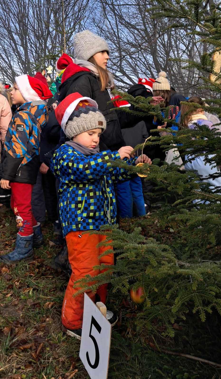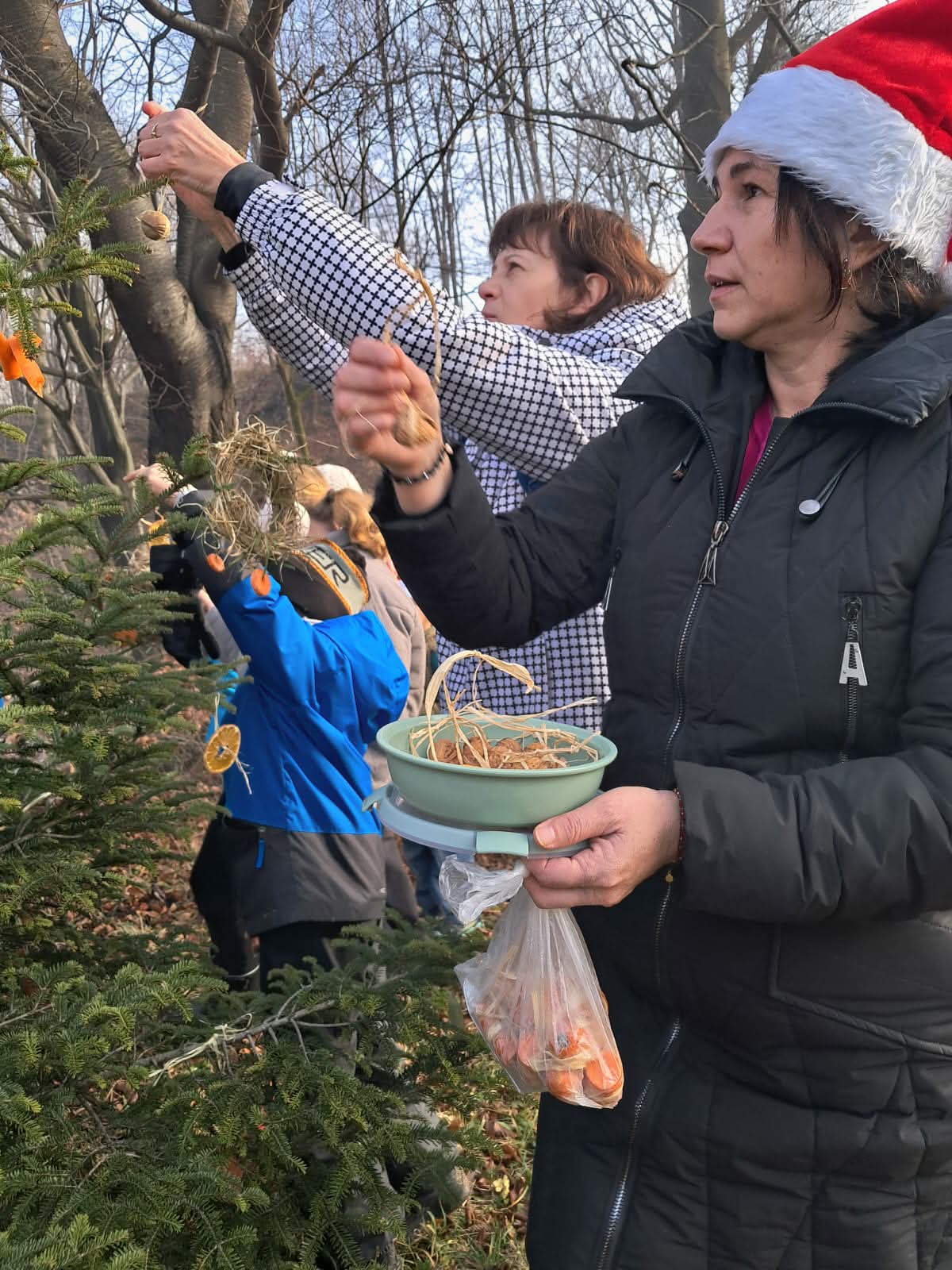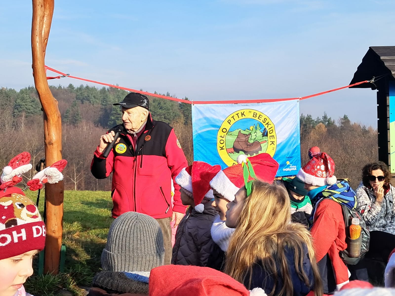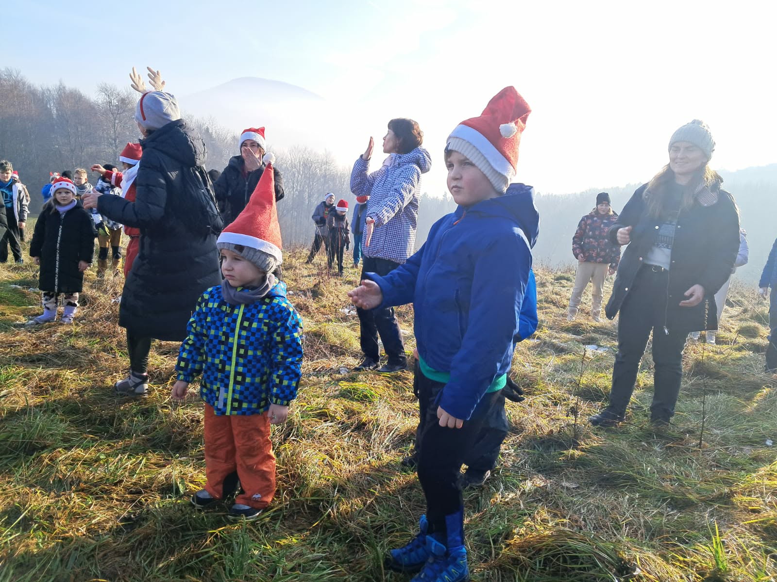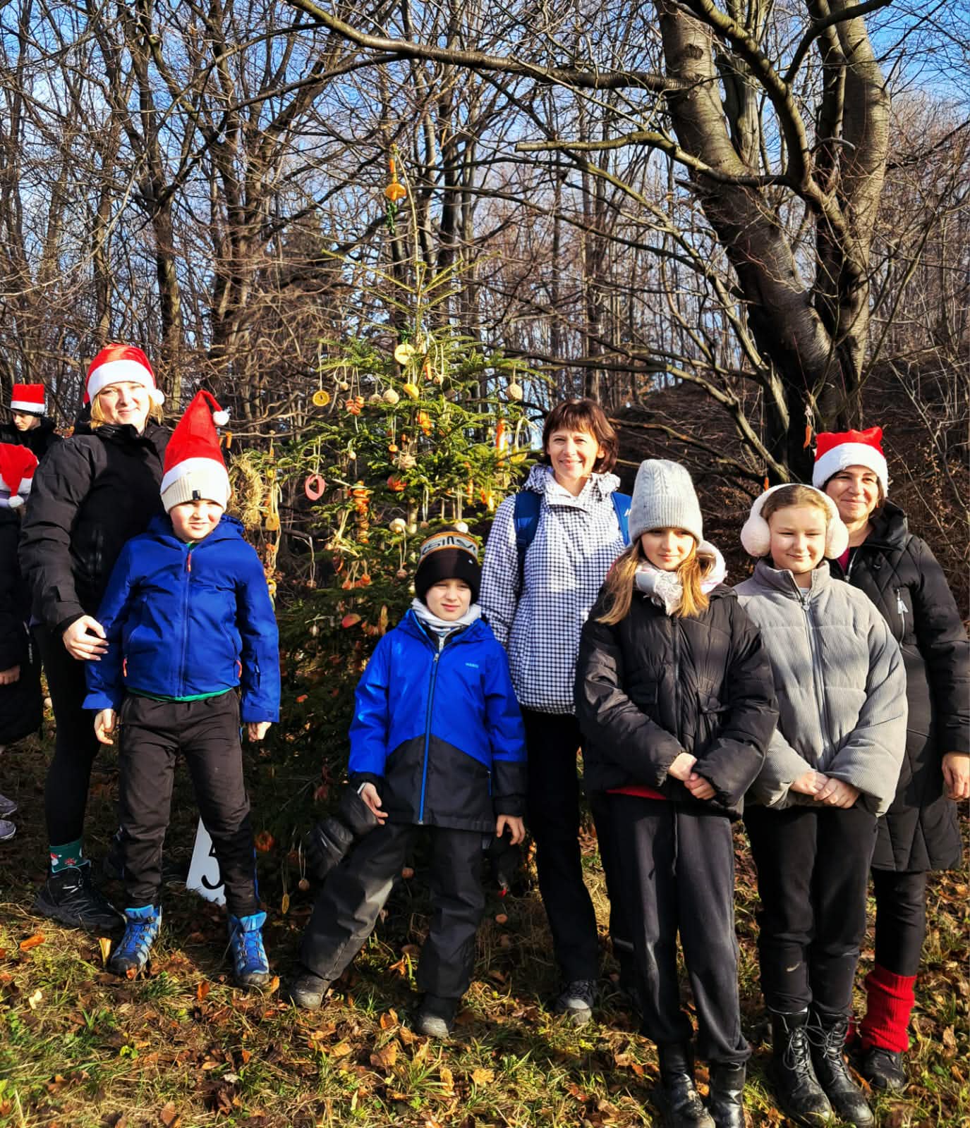 W sobotę 6 grudnia 2025 roku wzięliśmy udział w rajdzie na Wołek, którego główną atrakcją było wspólne ubieranie świątecznej choinki dla zwierząt. Przynieśliśmy własnoręcznie wykonane naturalne ozdoby – m.in.: jabłka, smalec z ziarnami, marchewkowe „łańcuchy”, buraki, orzechy, suszone pomarańcze oraz łódeczki z bułki i orzechów. Nasza choinka nie tylko wyglądała pięknie, ale przede wszystkim była wartościowym, naturalnym poczęstunkiem dla ptaków i drobnych zwierząt. Dodatkową atrakcją były zabawy i tańce przy muzyce prowadzone przez animatora. Odwiedził nas również Święty Mikołaj, od którego otrzymaliśmy prezenty!