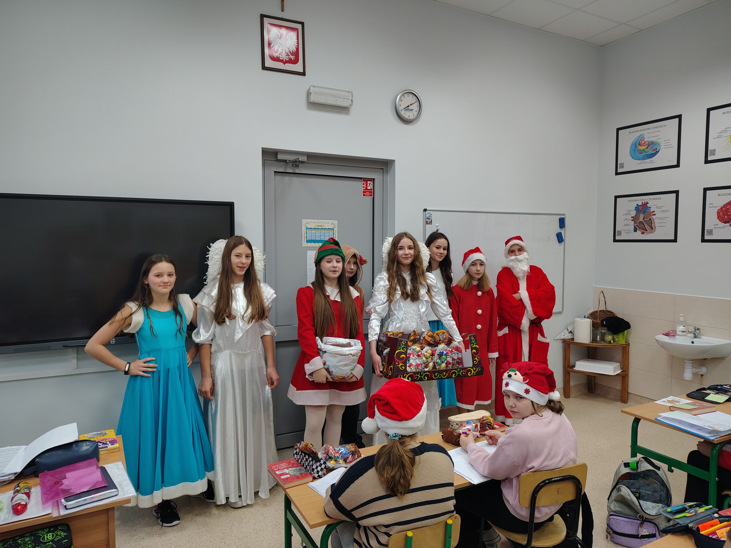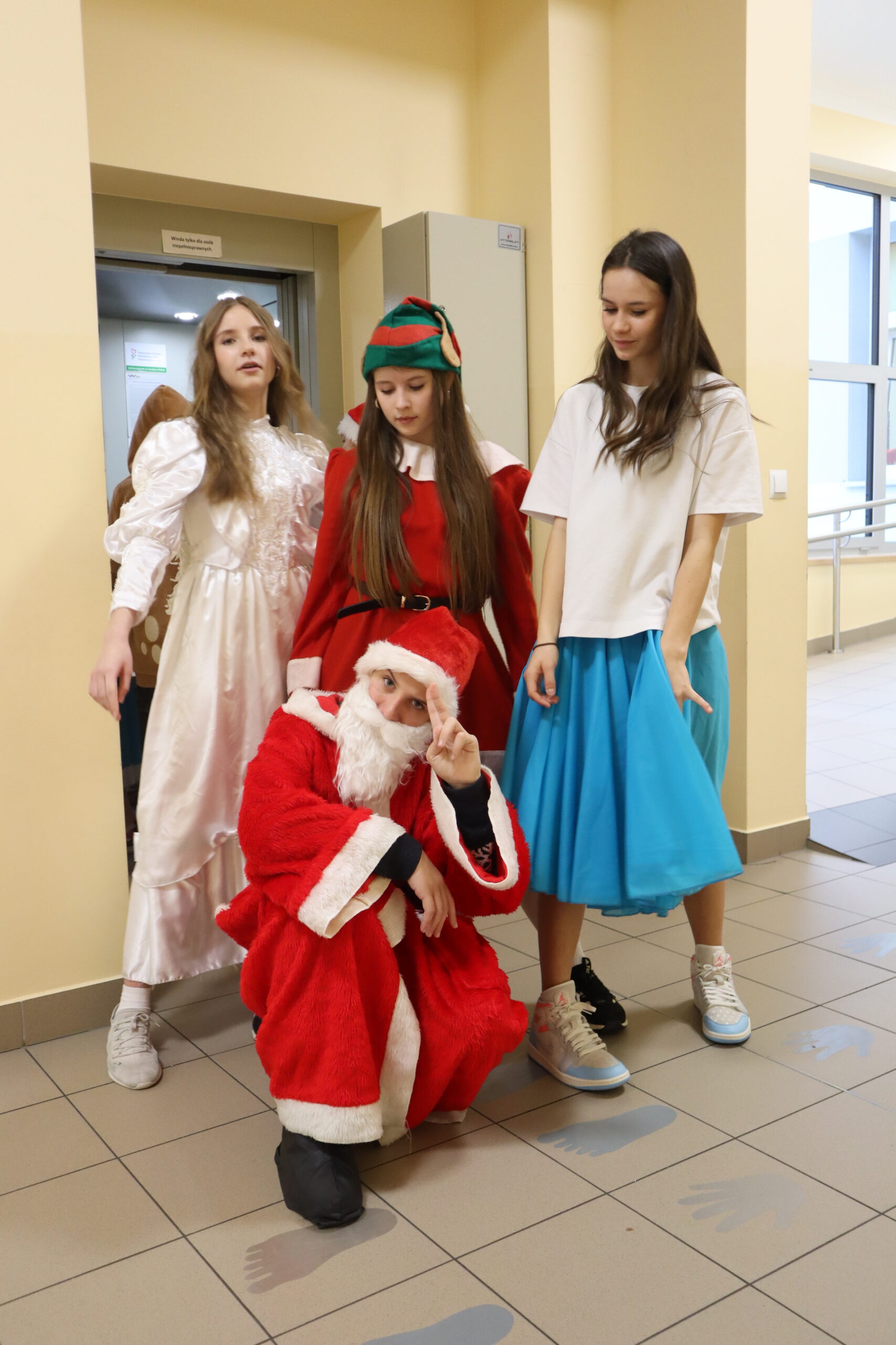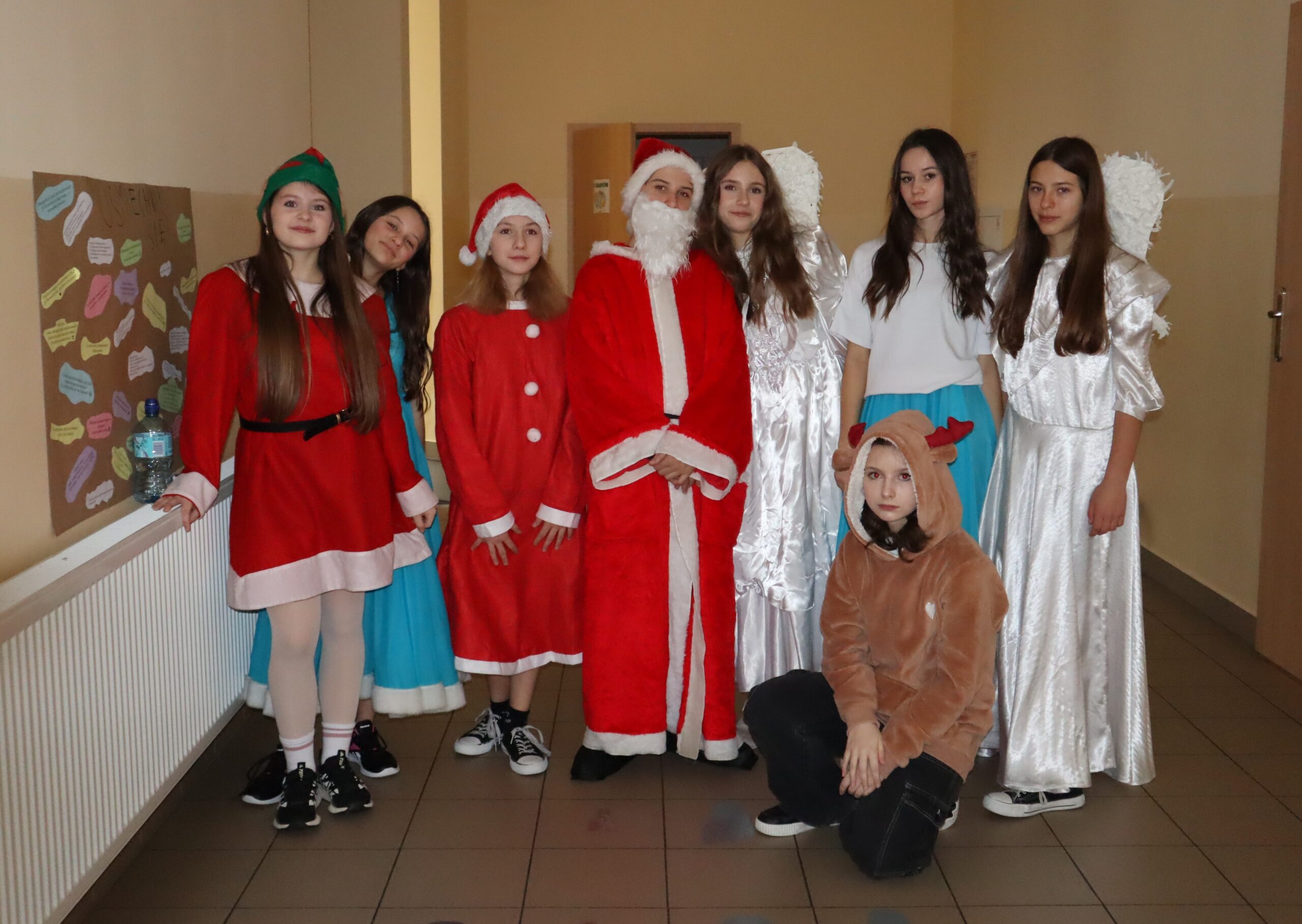 Kulminacją dnia była duża przerwa, podczas której uczniowie wzięli udział w mikołajkowym flashmobie. Wspólny taniec, muzyka i świąteczny klimat sprawiły, że szkoła tętniła pozytywną energią, a wszyscy – zarówno uczniowie, jak i nauczyciele – świetnie się bawili.