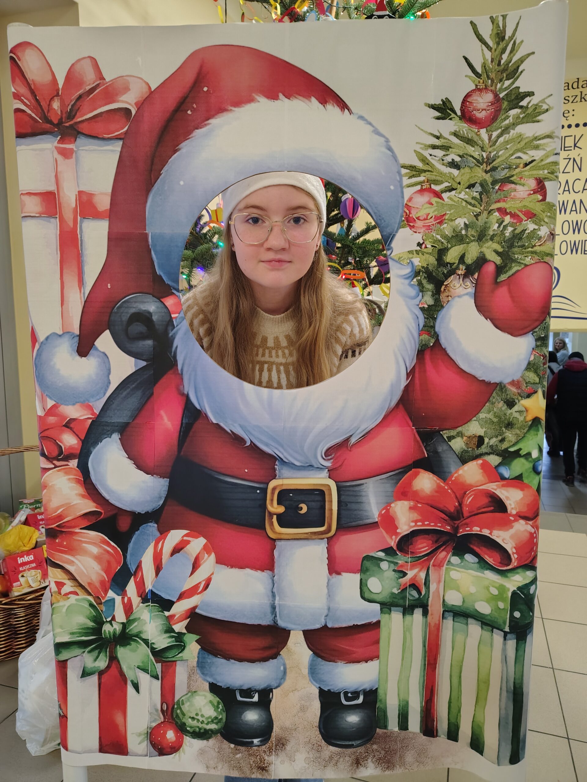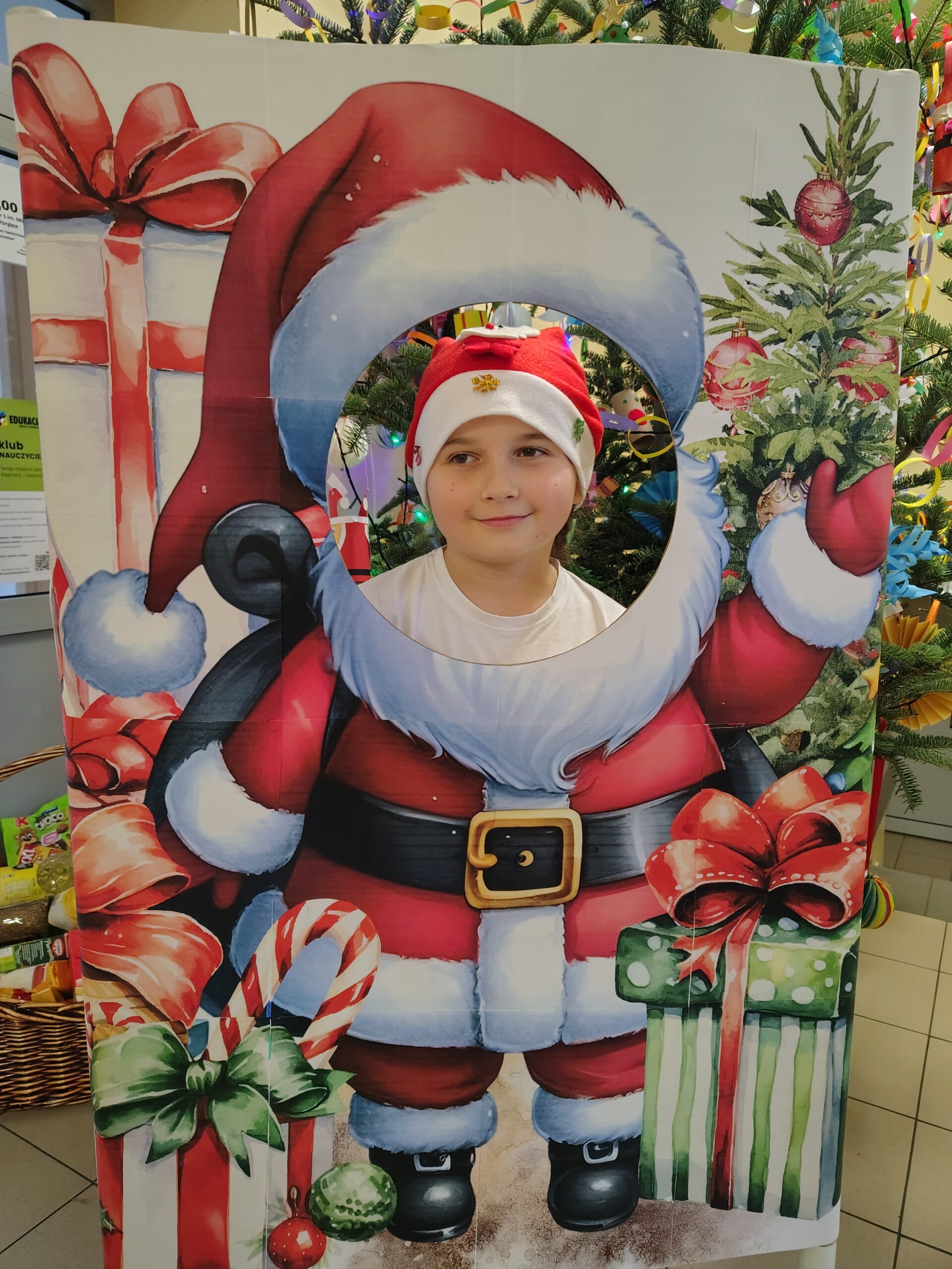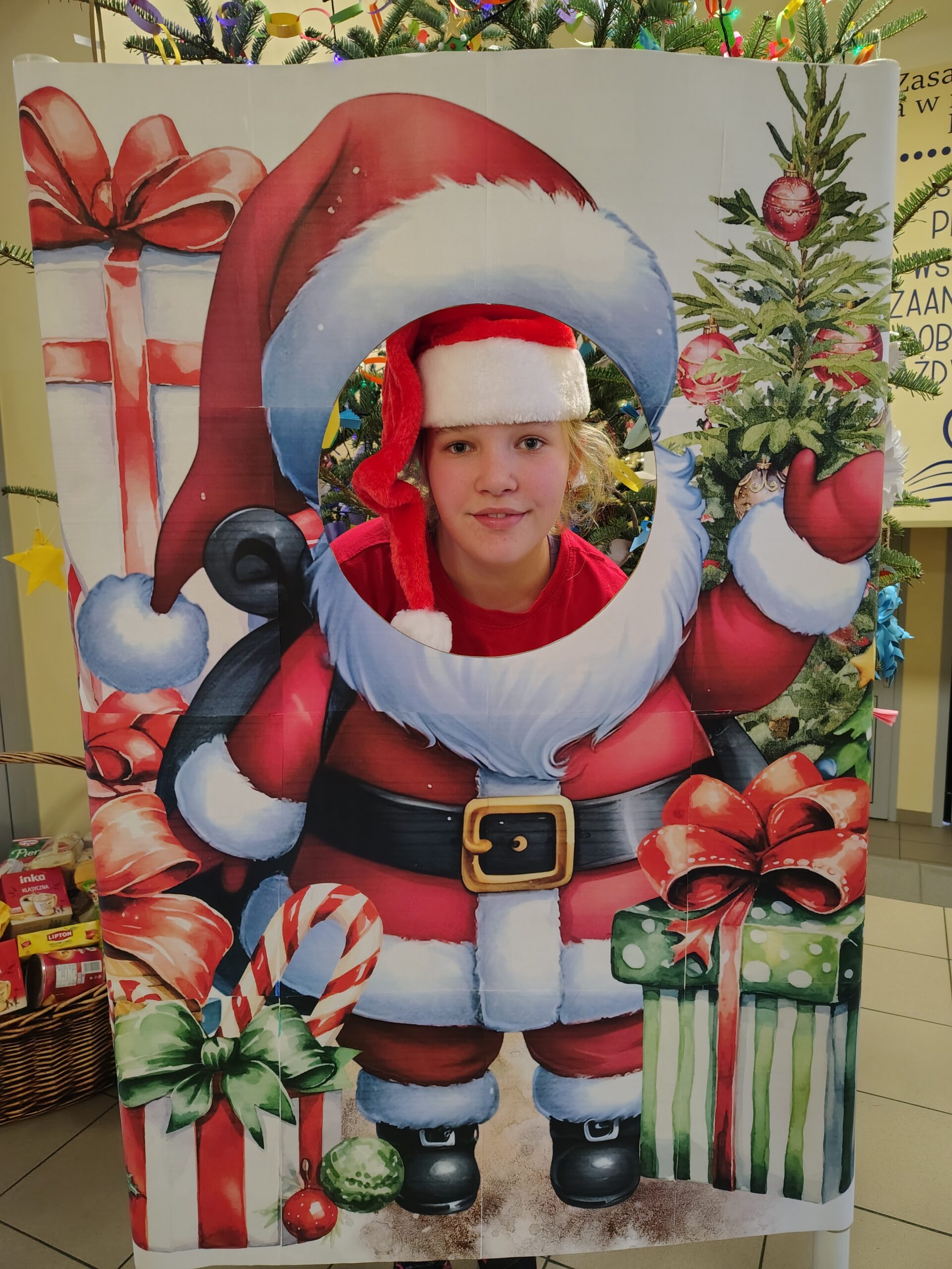 Tego dnia w naszej szkole panował niezwykle radosny i świąteczny klimat, ponieważ obchodziliśmy Dzień Czapki Mikołajka. Już od rana korytarze wypełniły się uczniami w mikołajkowych czapkach, czerwonych strojach i świątecznych akcentach, które wprowadziły wszystkich w magiczny nastrój. A przy pięknie udekorowanej szkolnej choince stanęła także fotobudka, w której każdy mógł choć na chwilę wcielić się w rolę Świętego Mikołaja.