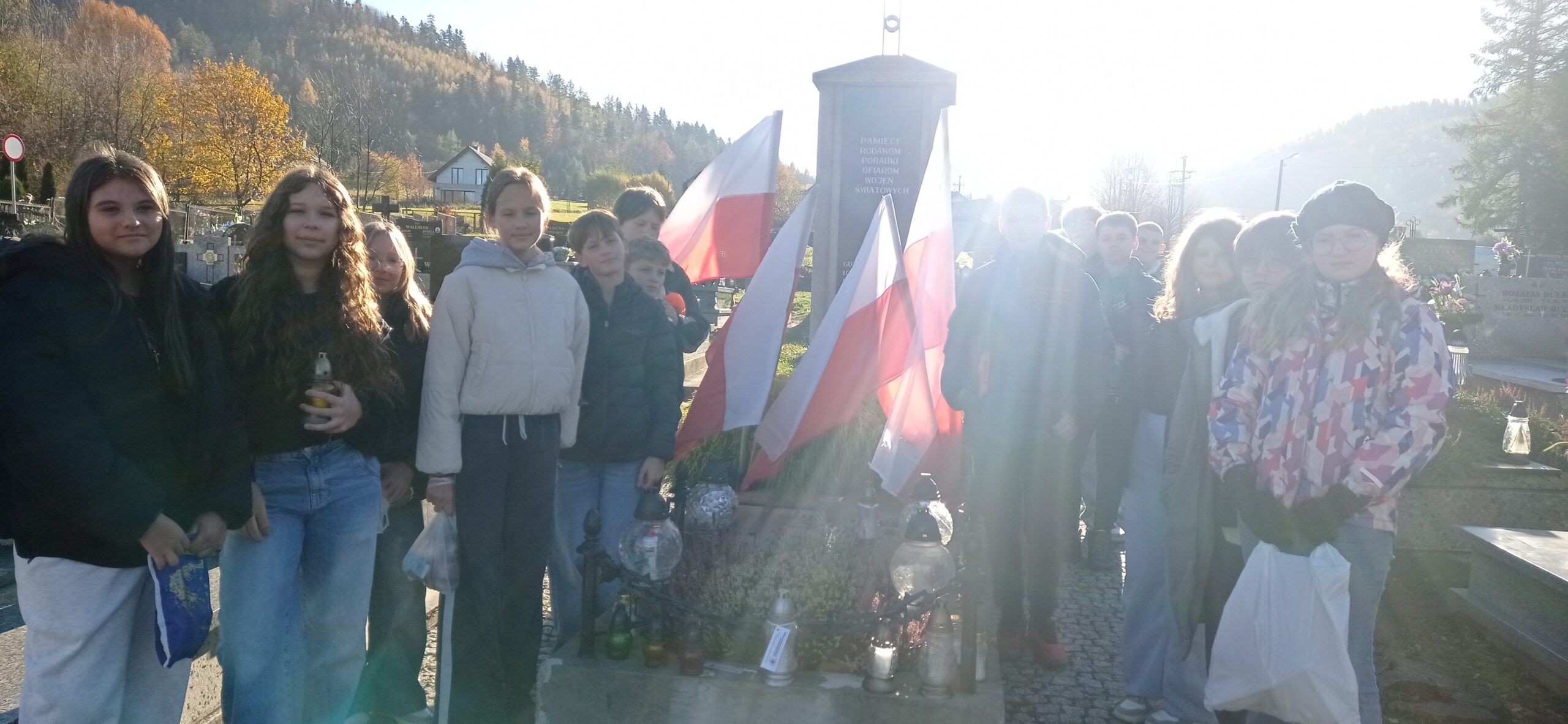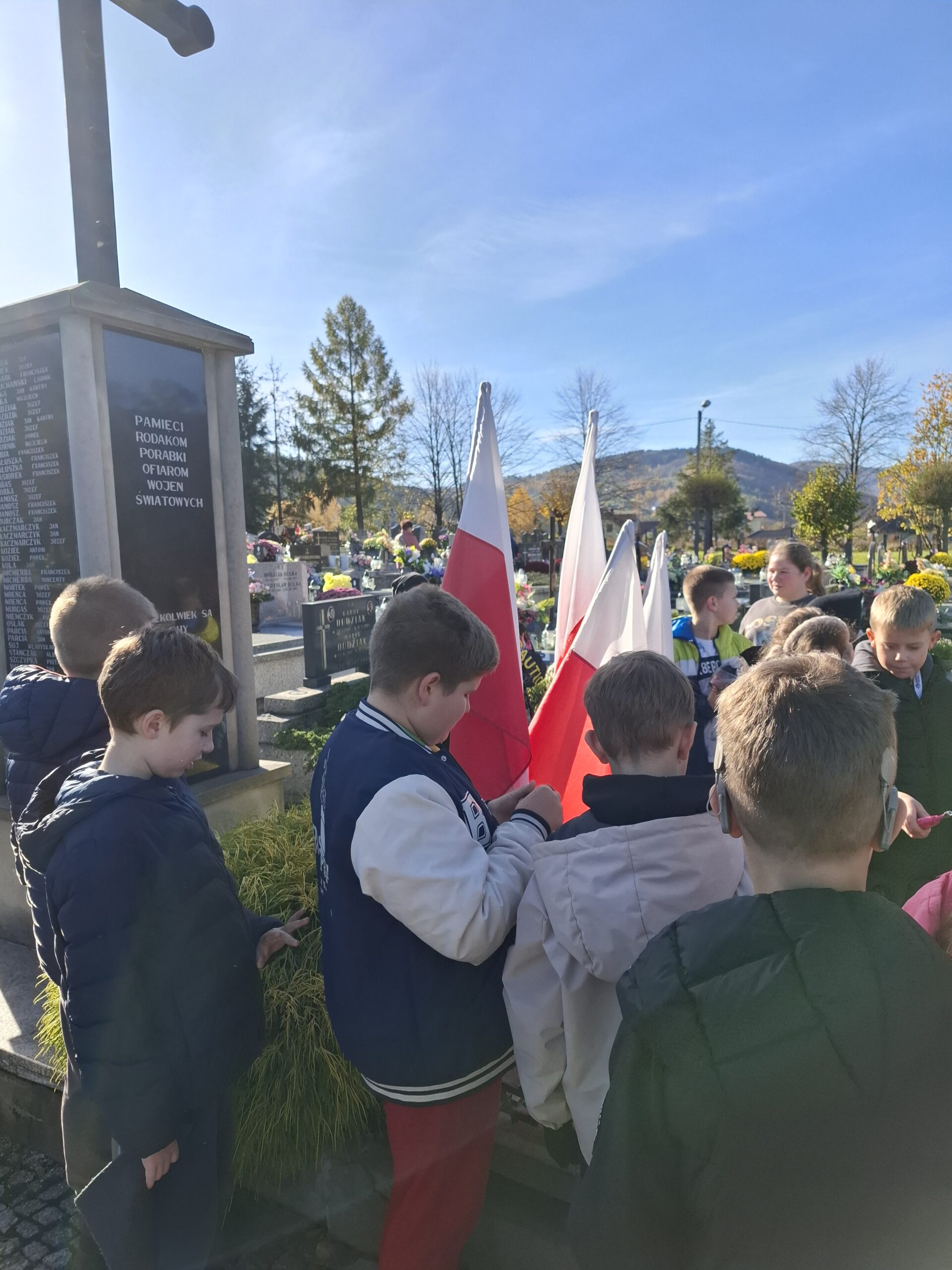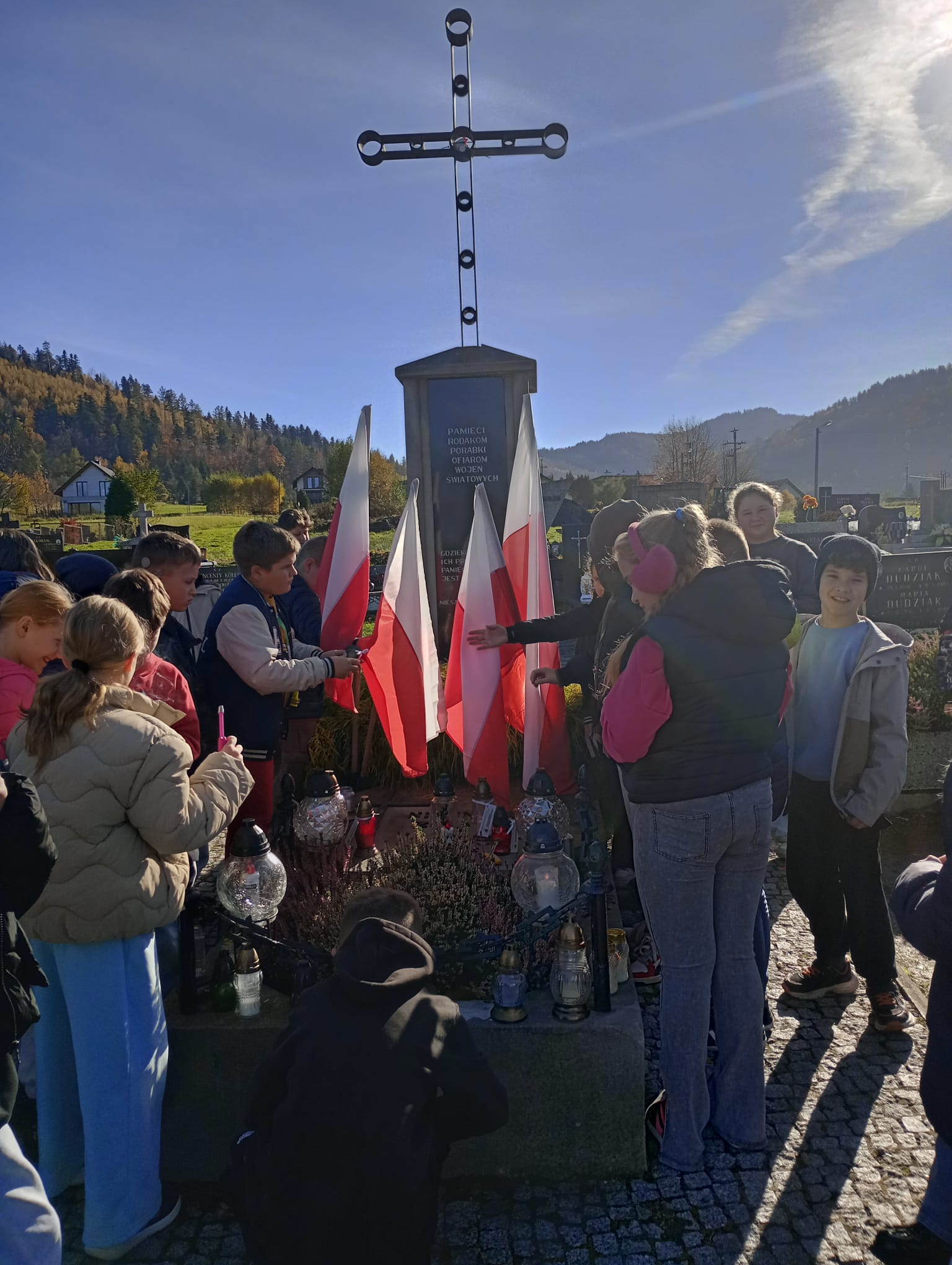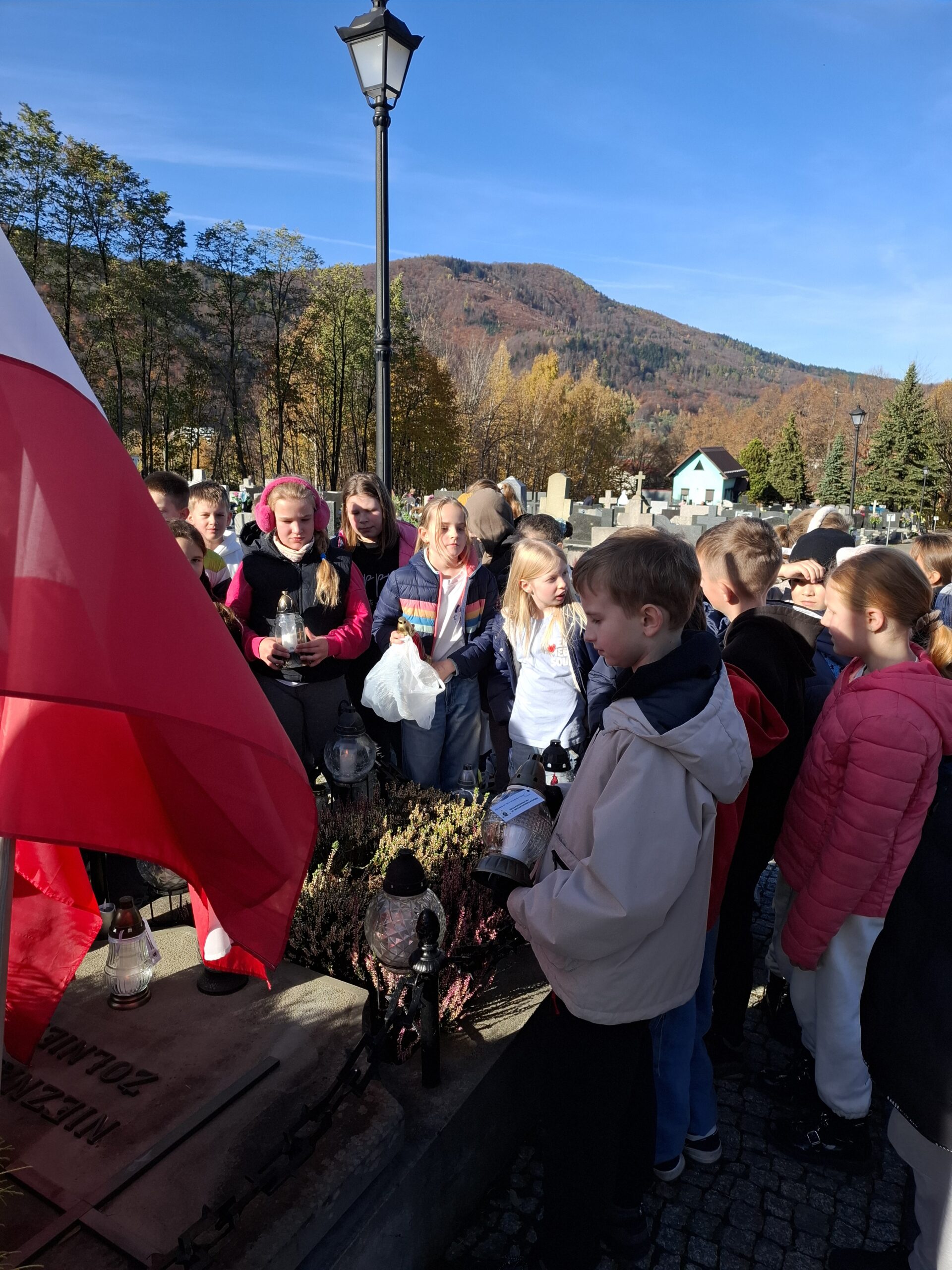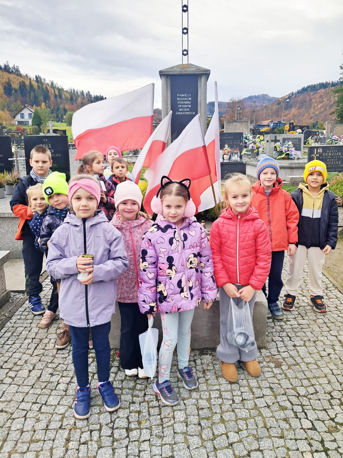 W ramach akcji MEN „Szkoła pamięta” wychowawcy wraz z uczniami udali się na Grób Nieznanego Żołnierza w Porąbce, aby uczcić pamięć walczących i poległych za Polskę. Dzieci wysłuchały krótkiej historii o bohaterach, którzy oddali życie za ojczyznę, a następnie zapaliły znicze z zawieszką zawierającą myśl: „Nie umiera ten, kto trwa w pamięci żywych.” W ciszy i skupieniu uczniowie oddali hołd poległym.