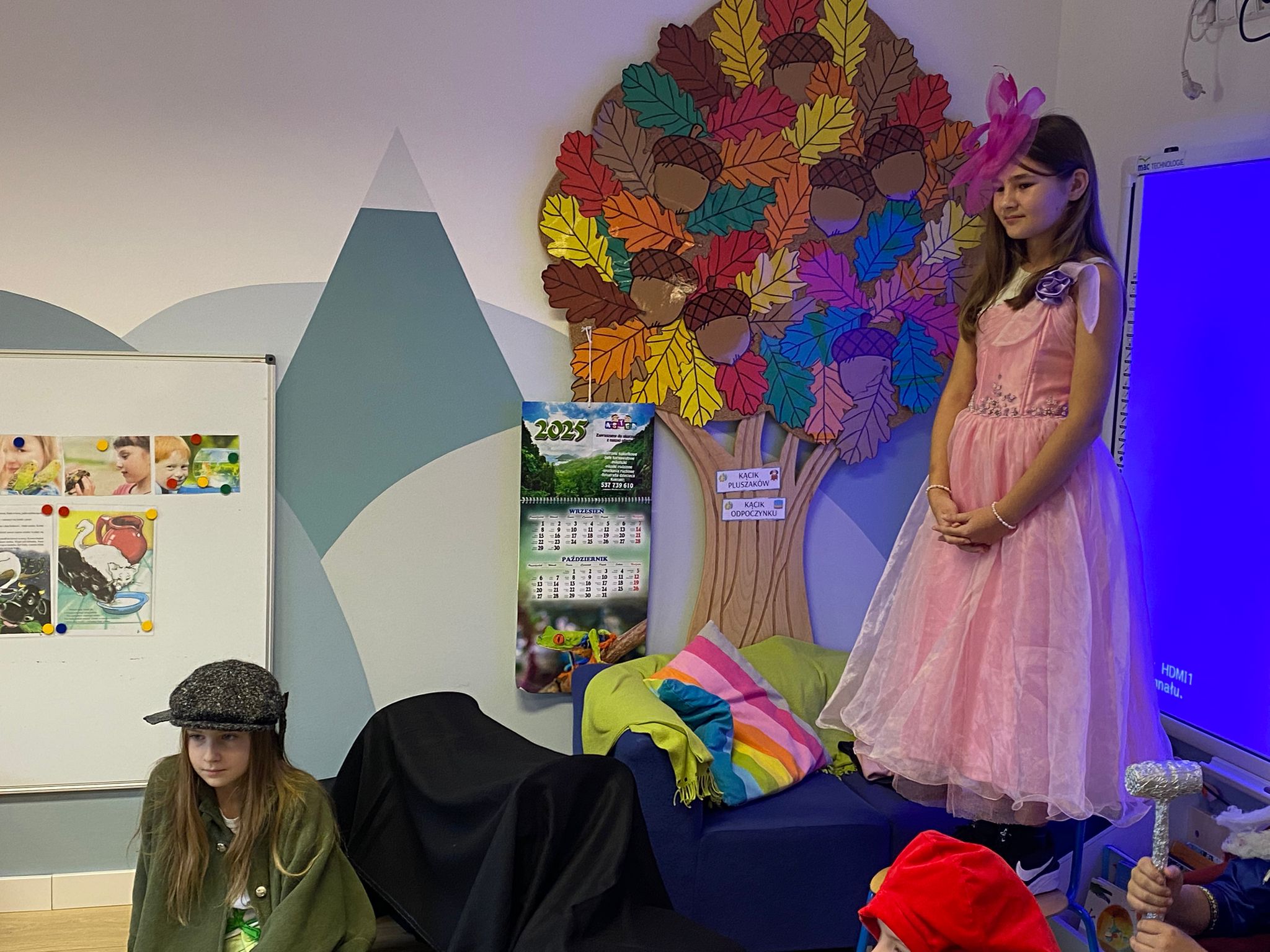 W klasie 1a odbył się wyjątkowy Dzień Postaci z Bajek. Uczniowie opowiadali o swoich ulubionych bohaterach – zdradzali, z jakich bajek pochodzą, czym się wyróżniają i za co można ich lubić. Nie zabrakło także quizów wiedzowych, podczas których dzieci sprawdzały, jak dobrze znają bajkowe historie.