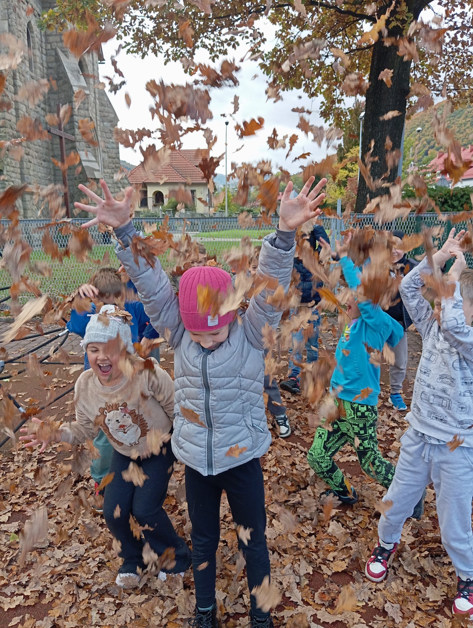Jesienne zabawy wśród kolorowych liści