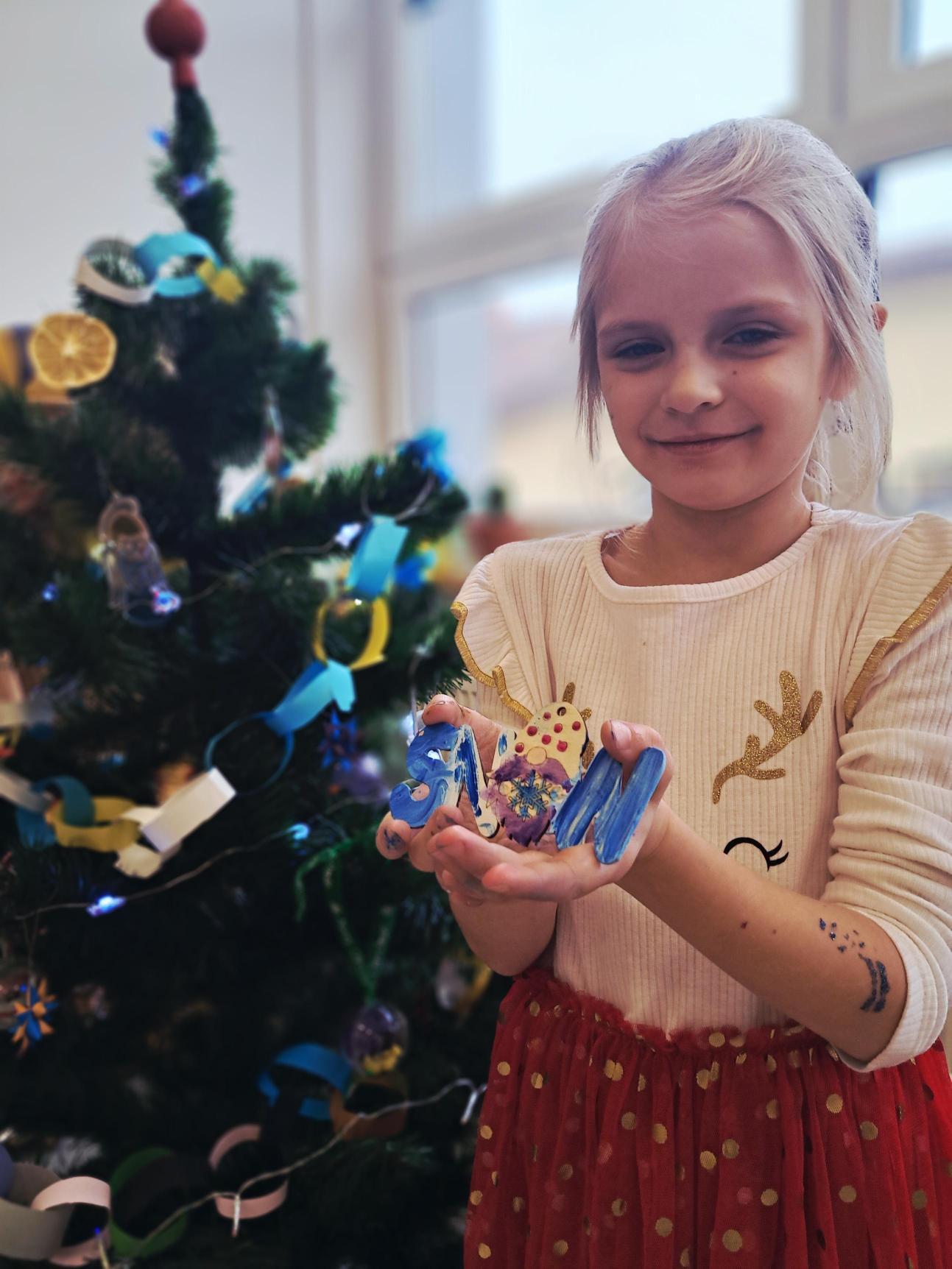 W ostatnich dniach przed świętami Bożego Narodzenia uczniowie klasy 1a wzięli udział w świątecznych zajęciach. Dzieci z dużym zaangażowaniem wykonywały własnoręczne ozdoby choinkowe, rozwijając przy tym swoją kreatywność i zdolności manualne. Następnie wspólnie ubierały klasową choinkę, tworząc radosną i ciepłą atmosferę.