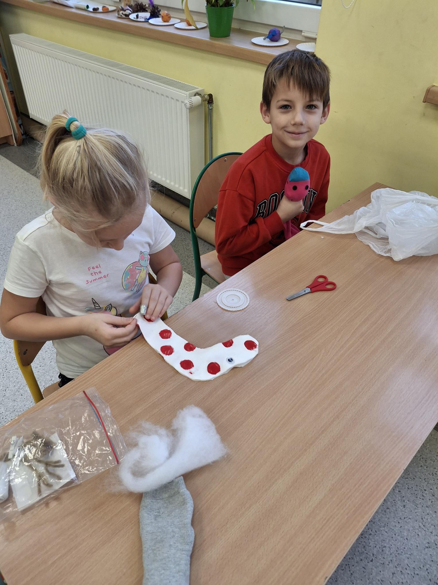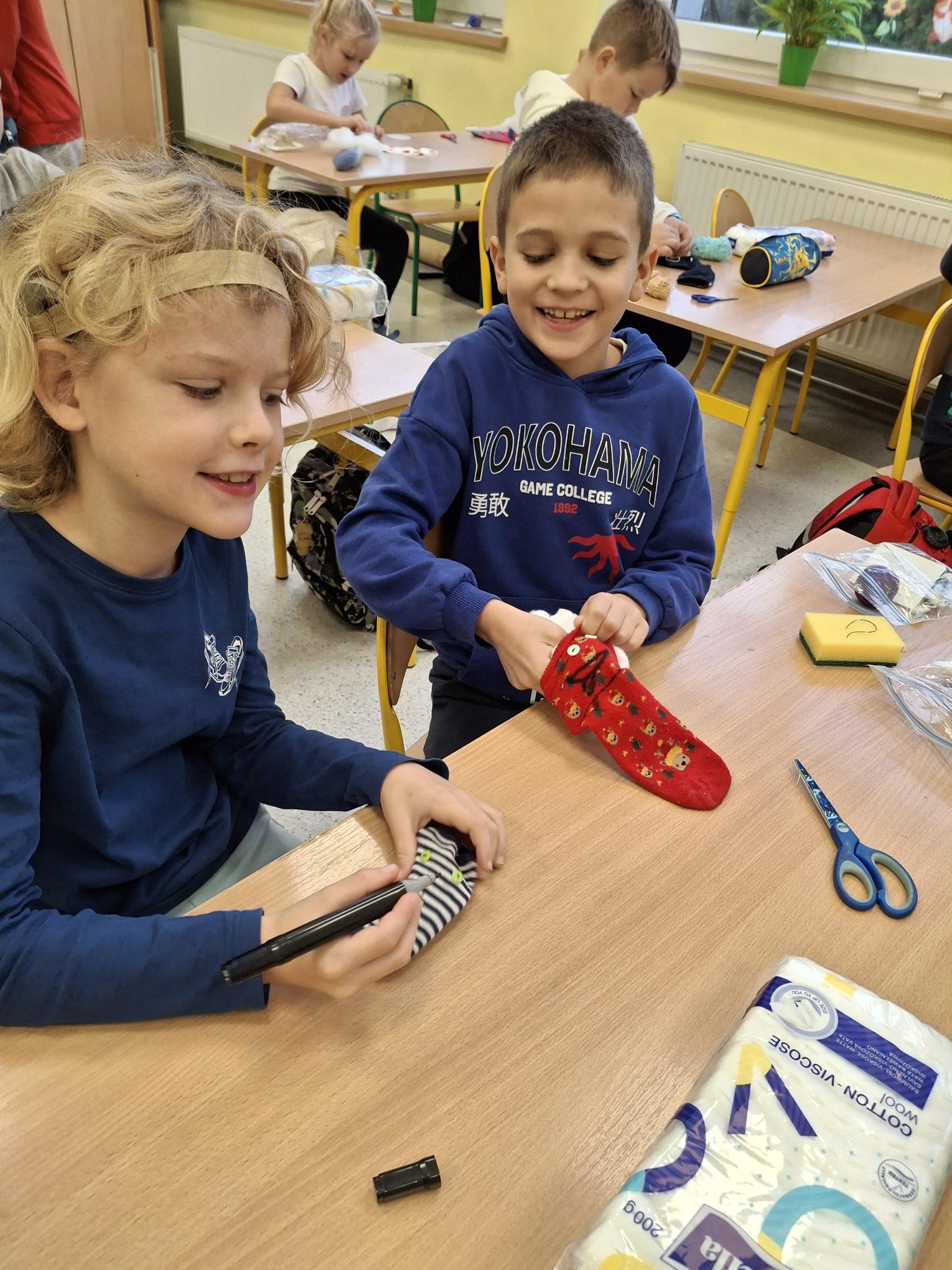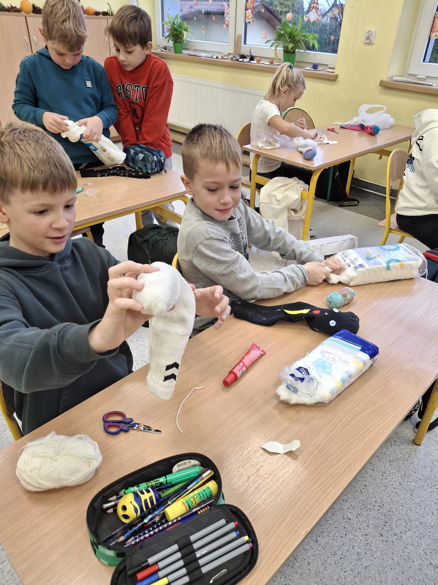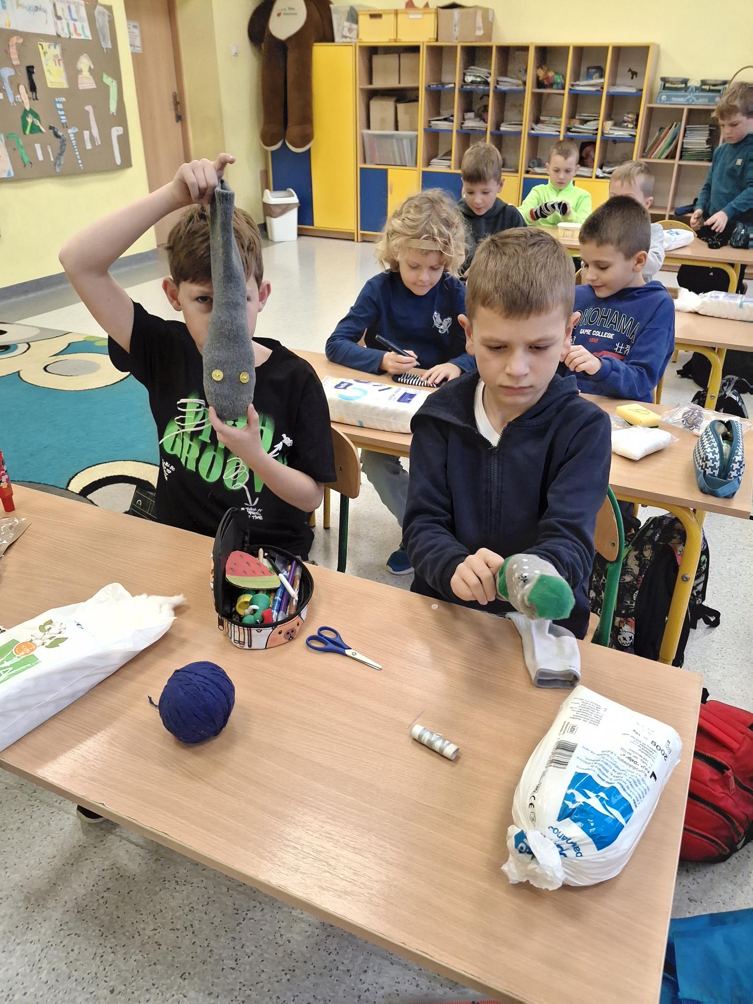 📖 Uczniowie klasy 2b omawiali lekturę pt. ” Niesamowite przygody dziesięciu skarpetek ” autorstwa Justyny Bednarek 📚. Cóż to była za zabawa! Omawianie lektur wcale nie musi być nudne😉 📖📚Książka dostarczyła uczniom niezapomnianych wrażeń i nauczyła wielu wartości 👫💚Dzieci dowiedziały się, że warto być przyjacielem, warto być odważnym, działać razem i być pomysłowym. To ważne wartości, które pomagają nam radzić sobie w życiu i dobrze dogadywać się z innymi. Na zajęciach technicznych powstały niezwykłe skarpetki🧶🧦 Każda wyjątkowa, niepowtarzalna i jedyna w swoim rodzaju. Uczniowie próbowali również samodzielnie szyć🪡🧵 Wszystko odbyło się pod czujnym okiem wychowawcy😊