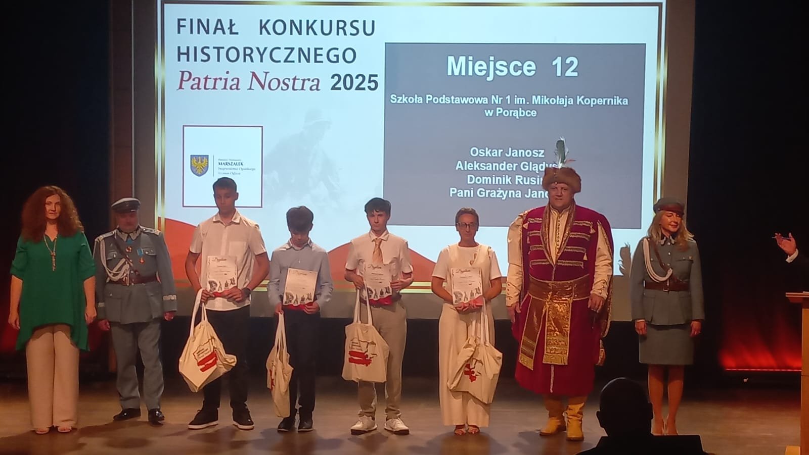 22 września br. uczniowie klasy 7b: Aleksander Glądys, Oskar Janosz i Dominik Rusin wraz z opiekunem, p. Grażyną Janosz, uczestniczyli w Gali Finałowej X edycji Filmowego Konkursu Historycznego Patria Nostra. Uroczystość odbyła się w Muzeum Sztuki i Techniki Japońskiej Manggha w Krakowie i miała bardzo podniosły charakter.