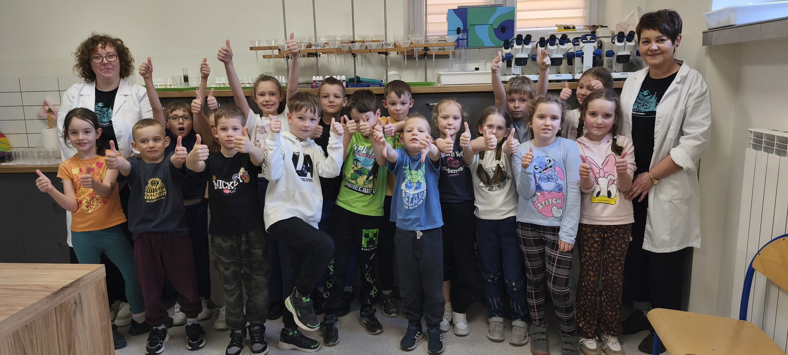 Nie zabrakło również prawdziwej nauki. W laboratorium uczniowie wcielili się w młodych naukowców – tworzyli brokatowe slimy, badali właściwości hydrożelu i poznawali tajemnicze… polimery. Nauka przez eksperymenty okazała się świetną zabawą, a błyszczące slimy wywołały mnóstwo radości i uśmiechów.