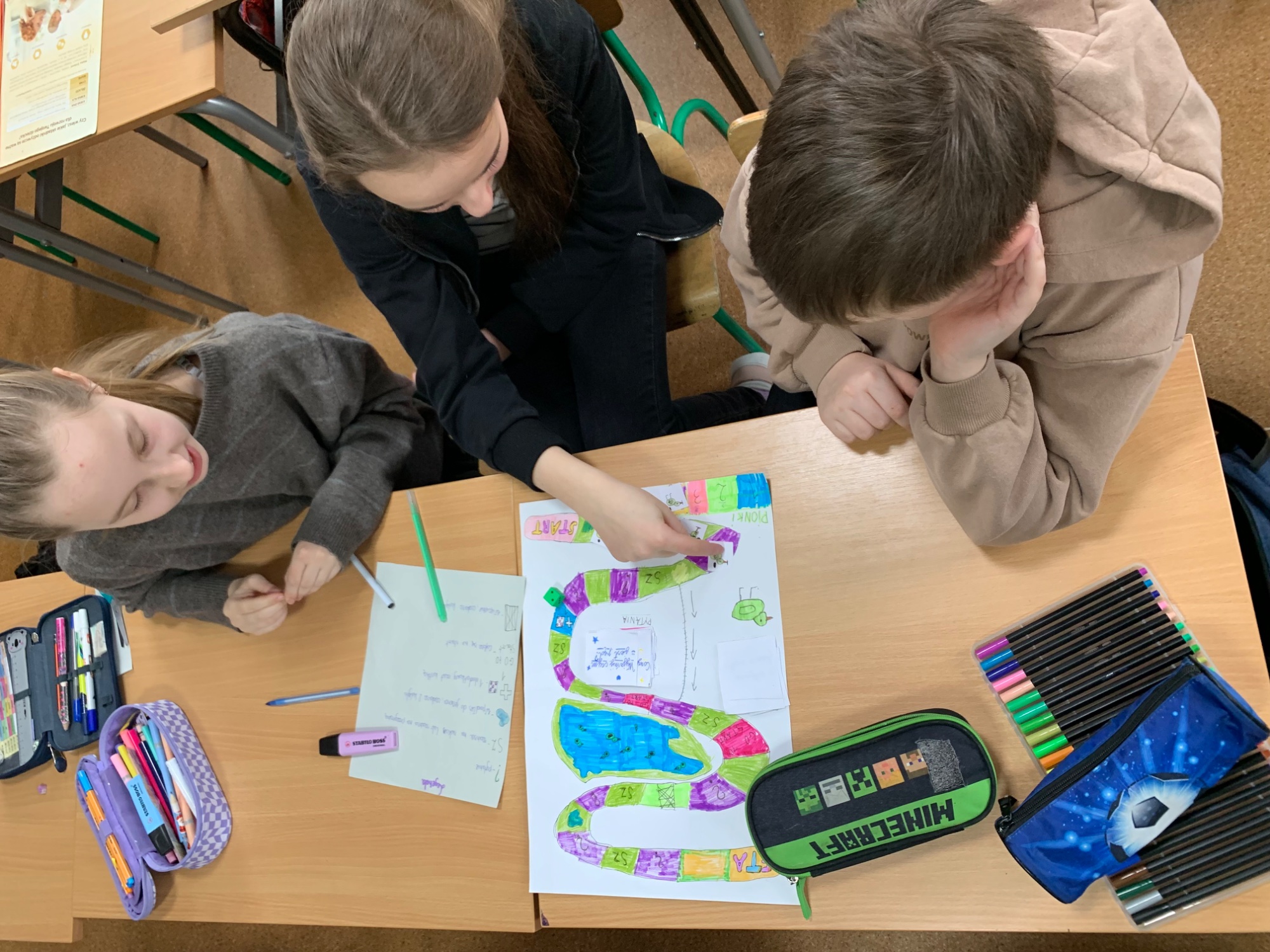 Uczniowie klas piątych brali udział w przedmiotowym projekcie z biologii „Gramy w organy roślinne”. Celem projektu było poznanie budowy i funkcji organów roślinnych: korzenia łodygi i liścia. Uczniowie pracowali w grupach, każda z nich przygotował planszę, pytania i zasady do gry, na temat wylosowanego organu roślinnego.